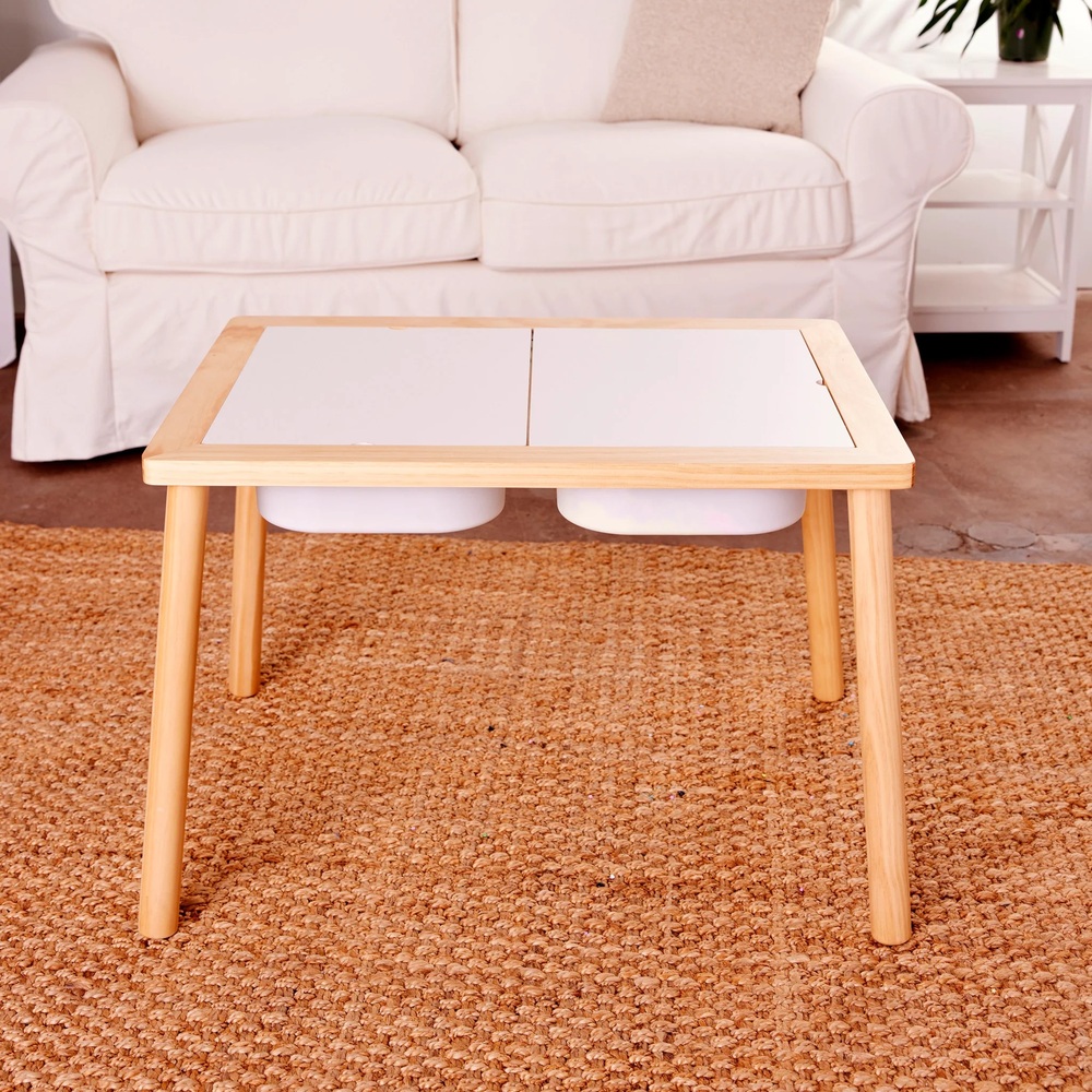 Easy-to-assemble, the sensory table for toddlers comes ready for play with 2 removable/washable bins and 2 table-top pieces. Sensory table is a versatile and fun educational tool. When used for sensory play, it provides an engaging hands-on activity for kids to explore and learn through their senses. When used as a table, it provides a play surface to enjoy various activities such as drawing, building, crafting and more!