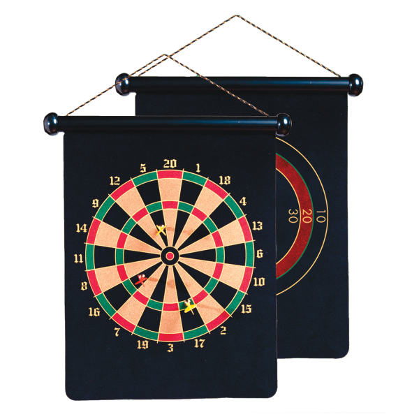 The game with no point to it! So, you think you've seen everything there is to see when it comes to dart games? Well, our unique version has no point to it! In fact, our professionally weighted darts have magnetized ends to them so you can't spear an opponent! with two playing surfaces to choose from, our reversible dart game offers double trouble.