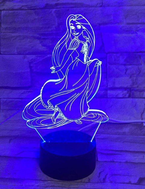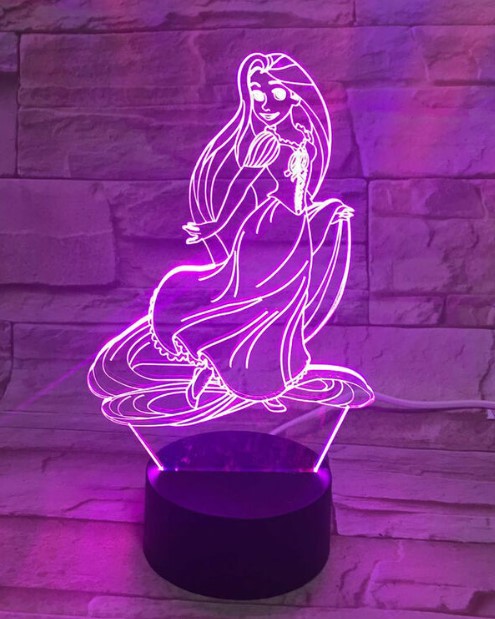 The 3D Acrylic night light casts a glow, the perfect light for reading bedtime stories. Low heat emission, the color changes by pressing the button. 2 color options (Purple-Blue). LED base with power cable so no batteries required. The ideal gift for the Disney princess lover in your life!