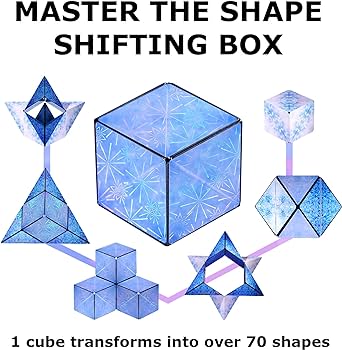 Unlock the mystery of Shashibo! Each Shashibo is powered by 36 rare earth magnets. 1 cube transforms into over 70 shapes. Combine 2 or more Shashibos to build larger shapes and create more possibilities. Can you master the shape shifting box?