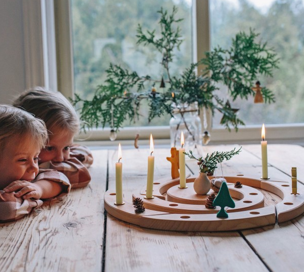 This Birthday Spiral or Advent Spiral creates a special atmosphere on each occasion: for birthday tables, for decoration on a window-sill and on the nature table in christmas time. Because of its 24 holes one can use it as a advent calendar. Light up a candle on every day, or let a candle go from hole to hole.