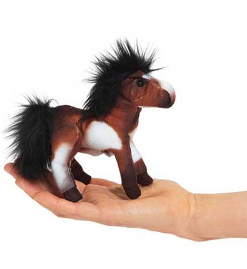 Horse lovers will have a galloping good time with the Folkmanis Mini Horse. This extraordinary painted-pony finger puppet is detail printed with a plush mane and tail.