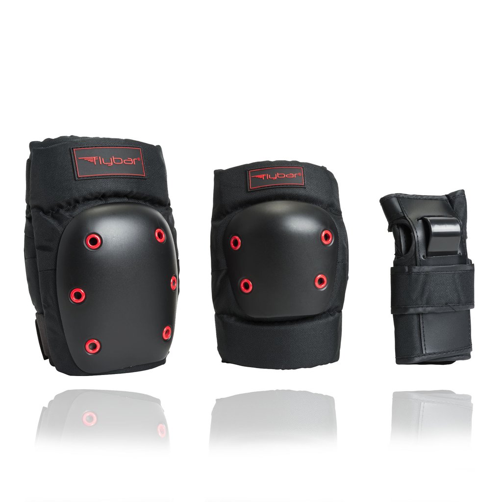 Each knee pad, elbow pad and wrist guard feature soft, breathable neoprene materials for a comfortable fit and durable ABS hard caps to keep you safe and withstand impact. The Flybar Safety Gear Set is fully adjustable to fit someone of any size. Simply place the pad over your knee/elbow/wrist and adjust the straps to your liking. Flybar Knee pad, elbow pad and wrist guard set are suitable for many sports like: skateboarding, pogoing, roller/inline skating, cycling, BMX, scooter, mountain biking, and any other extreme sport or activity.