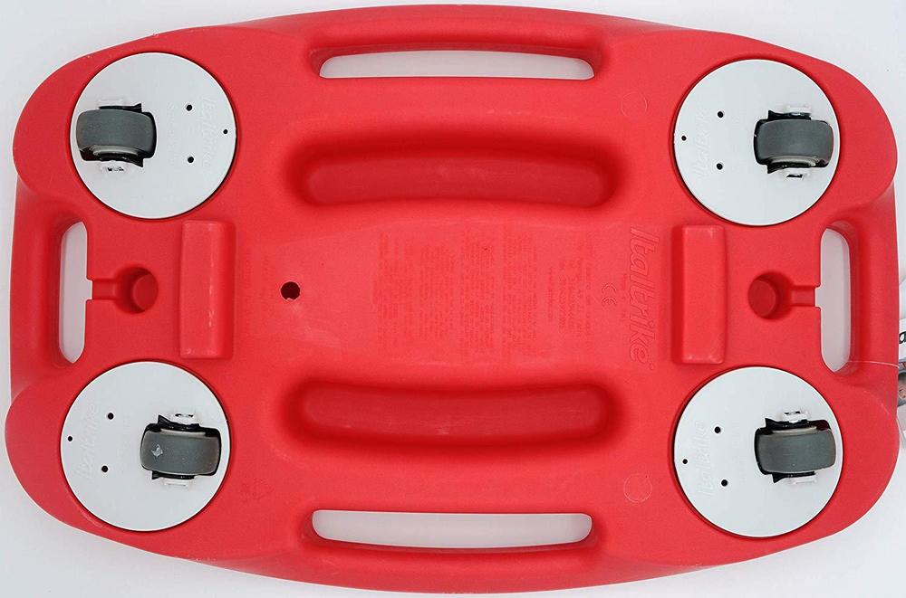 This sturdy ride-on can be ridden indoors and outdoors. The wheels are lined with sturdy, smooth rubber so they do not scratch or dirty the floor and added ball bearings make for a smoother ride. All four wheels rotate 360 ° to enable your child to move easily in all directions and are protected to prevent any finger crushing. The board has a wide surface for your child to lie on and large, easy grip handles on all sides of the board for them to hold on to. Movement improves your child’s well-being, growth and development – Italtrike products support your child’s motor skills development while keeping them active!