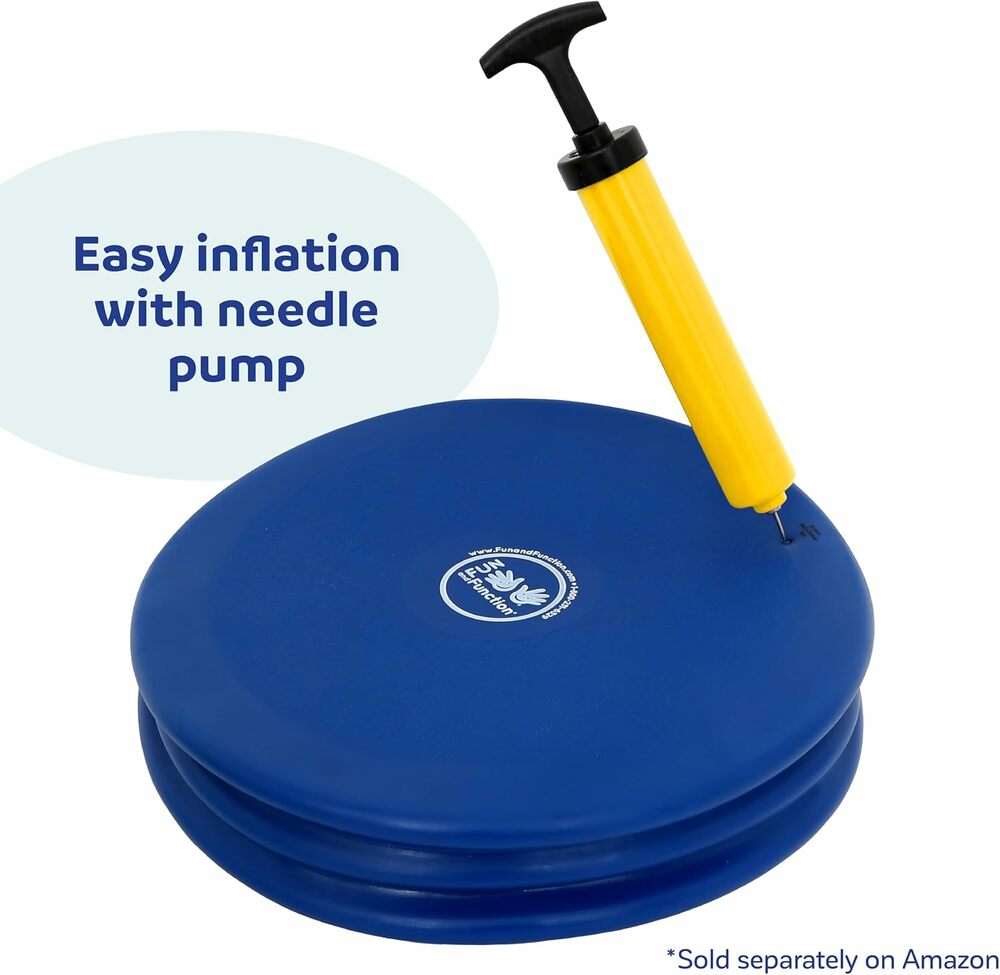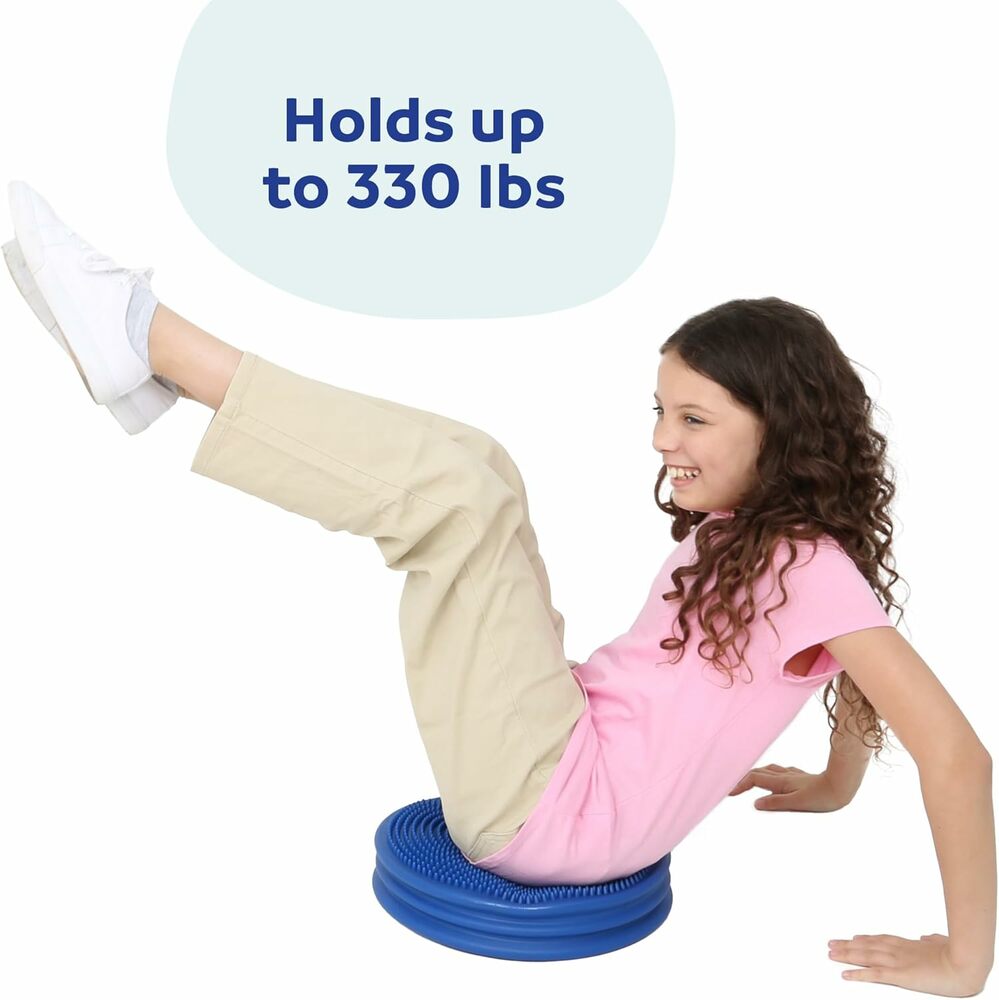 Trouble sitting still? Our air-filled seat cushion stimulates sensory awareness to help moderate the wiggles. Extra height means it also works great as a booster seat during schoolwork or while eating at the table. Smooth on one side with spiky tactile bumps on the other. Provides a discreet outlet for movement during circle time, desk work or while eating. Sensory input engages core and helps improve focus. Lightweight and portable for easy travel from home to school or work.