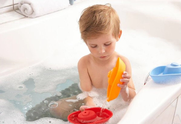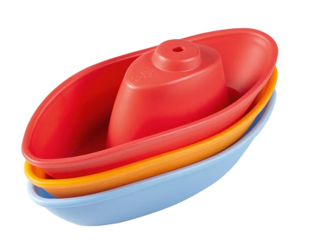 Bon Voyage! The stacking ships are ready to set sail through the bathtub or baby pool. Their shape allows them to easily ladle and scoop water, as well as next inside eachother for easy storage.