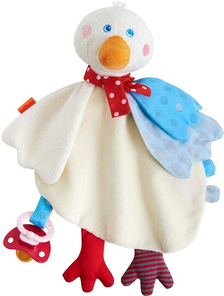 Classic HABA quality, Gallivanting Goose softly nestles on your baby's cheeks. It will help them fall asleep, and comforts them when teething. Gallivanting goose has a small hole in the back of the head so that parents can bob the head back and forth like a puppet and further delight baby.