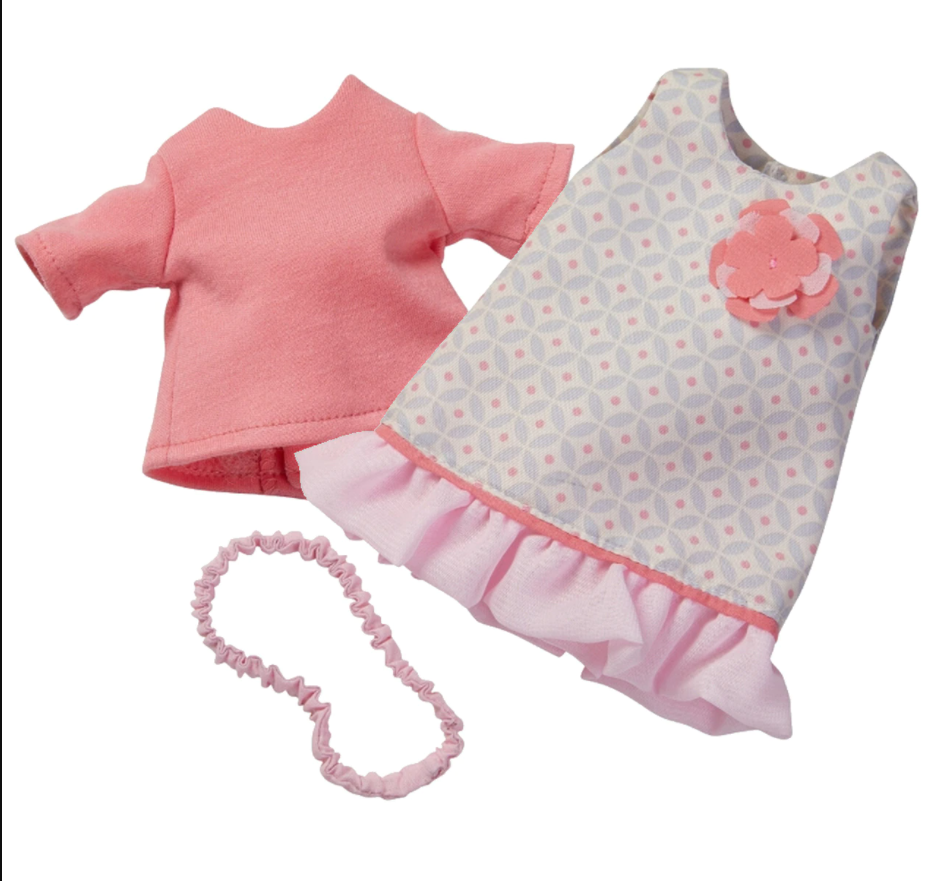 The Summer Dream dress set could well become the default outfit for the cute range of HABA dolls. The adorable dress in soft pink has playful ruffles on the hem and comes with a matching hairband to keep this playmate’s thick and curly hair tidy.