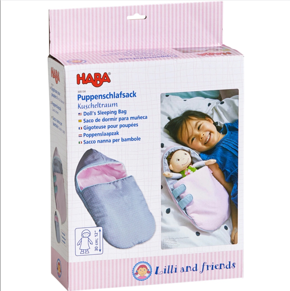 Any doll will feel cozy in this soft sleeping bag. Simply pull the two fasteners open, and your child's little darlings can snuggle up and drift off into the land of nod.