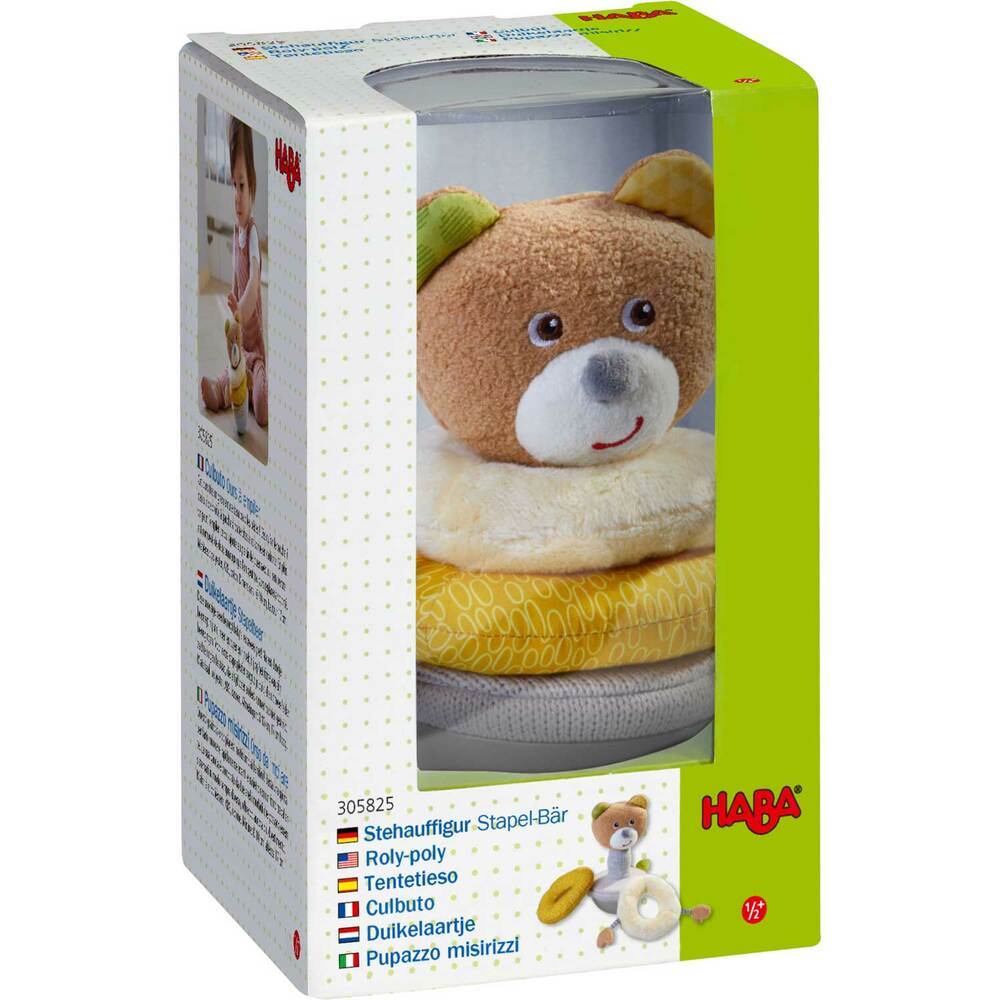Babies find this cute bear incredibly entertaining. When they give it a poke, it rocks backwards and forwards on its hemispherical base, tinkling a small bell. His abdomen consists of two soft fabric rings that baby will enjoy rearranging.