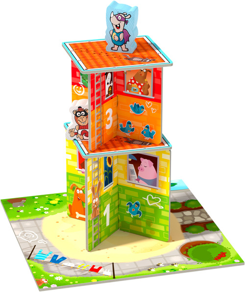 Rhino Hero Junior is a superhero in training who aims high. In three different games, the children practice their fine motor skills, work on a basic understanding of numbers and quantities, and also train their memories. Floor by floor, the fun and learning curve just gets steeper and steeper, until the heroic rhino reaches the top and the children win together.