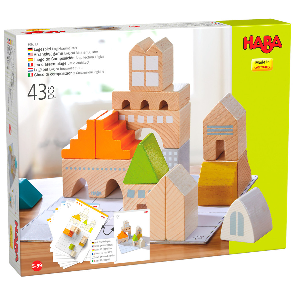 You can build, play, puzzle and learn endlessly with this cool laying game Logic Bouwmeesters! The set consists of a building plate, 26 building blocks and 16 sample cards printed on both sides. A building is depicted on the cards and it is up to you to recreate the construction. Sometimes you don't see exactly where the blocks are on the map, but you can fill that in yourself with a little logical thinking. That is not only great fun to do, but you also train your spatial insight with it. Moreover, the blocks can also be used for free play. This laying game is a perfect gift for little architects!