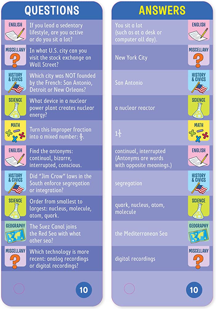 - 1,500 questions and answers covering math, science, English, History, Geography, and more