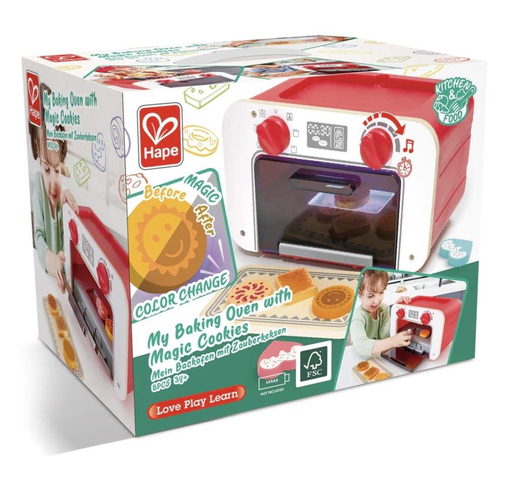 Create delicious-looking cookie treats for your family and friends with this wonderful bakery set! Includes one oven, one tray and six cookies that actually change colour when cooked in the oven!
