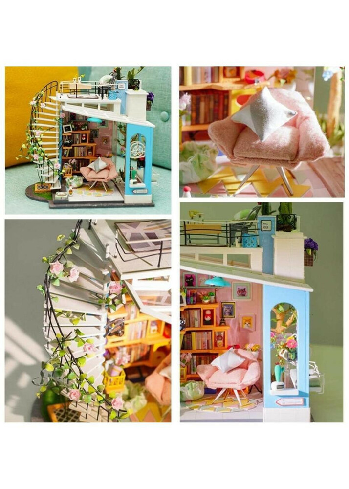 Dora's Loft is a modern style duplex apartment miniature. It is designed with soft and fresh colors like pink, blue and white. You can build so many beautiful details like flowers, vines, spiral stairs, a cozy corner with sofa and bookshelf. Enjoy the relaxing hobby and feel amazed by your work!