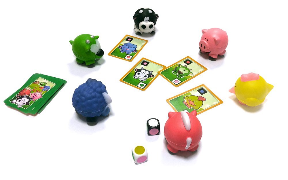 The player then rolls both dice. If the color rolled on a die matches the one depicted for the same die on one of the face-up cards, players race to grab the depicted animal from the table.Whoever does so first claims the card, and once the deck runs out, whoever has the most cards wins! But if none of the cards are claimed, another one is revealed, adding to the cards already visible. Sometimes multiple animals have to be grabbed at the same time. The same player can even try to grab 2 (or more!) animals at the same time!