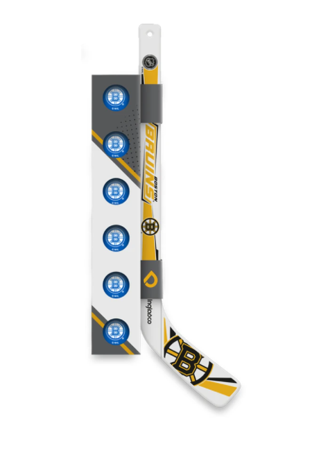 NHL Boston Bruins Rapid Fire Set. Includes one plastic player 18" mini stick and six foam balls. Perfect to practice your snipes with!