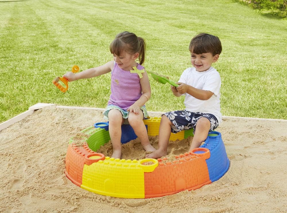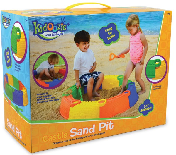 Snap together the 8 sturdy colourful castle pieces to make a 34″ diameter sand pit. Includes 2 digging tools – a rake and shovel. Easy to take apart and stacks compactly for easy storage and portability. The kids are sure to “dig it”.