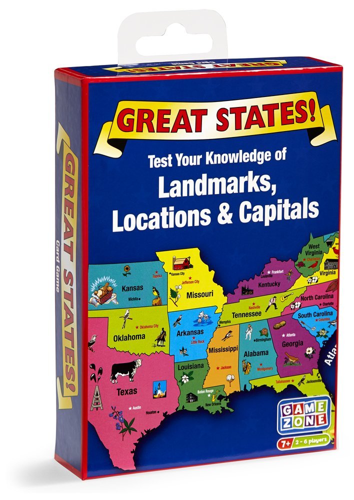 A great card game based on the popular Great States board game. This game features 200 trivia questions about all 50 states and includes fold-out map of the USA. Four different games to play.