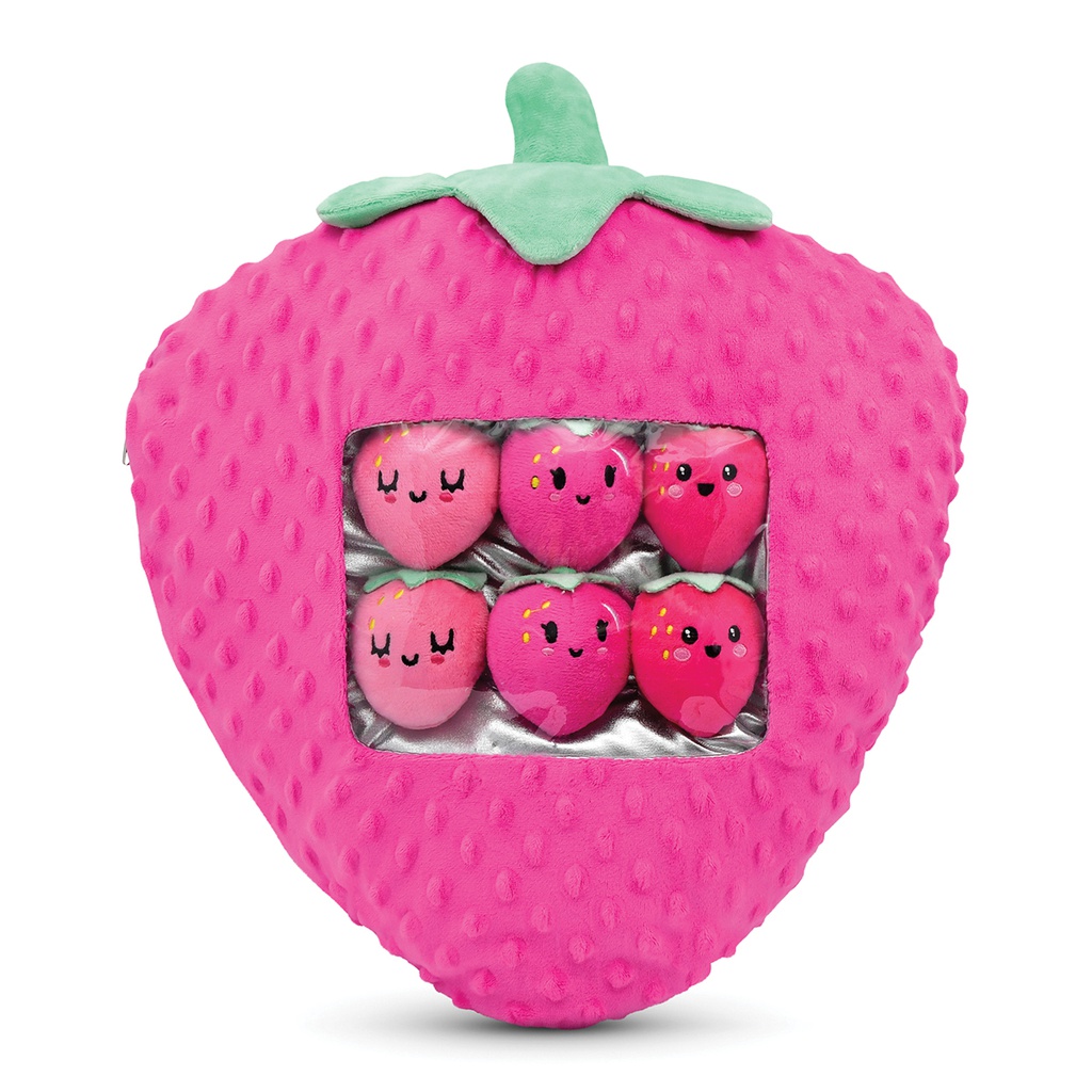 Cuddle up with this large plush strawberry with 6 adorable mini strawberries inside the zipper enclosure.
