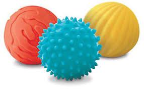 This soft-touch trio ball set is appropriately sized to improve your baby's dexterity. The balls are ribbed or dotted to stimulate baby's sense of touch.