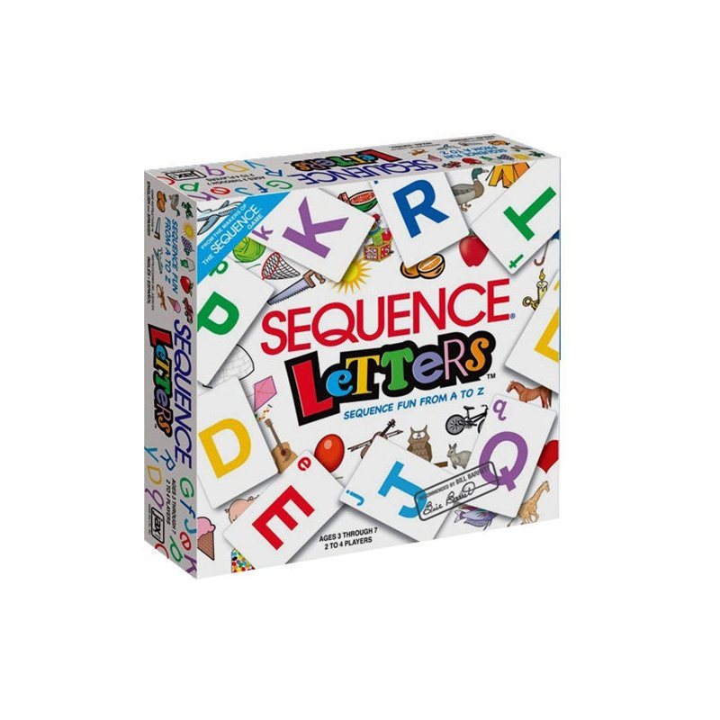 Fun filled Sequence Letters Game includes all the fun of Sequence with a fun new way to learn the Alphabet and the sounds each letter makes. Players sound out the letter on their card, match it to the beginning sound of the picture on the game board. Each card features a letter of the alphabet in upper and lower case. When you have 5 of your chips in a row, you've got a sequence