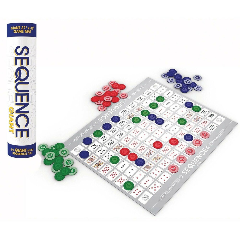 Play a card from your hand, place a chip on a corresponding space on the game board...when you have five in a row, it's a . Learn to block your opponents - remove their chips. Watch out for the Jacks - THEY'RE WILD! With a little strategy and a little luck - you're a winner! Jumbo Size Deluxe Playing Mat Sequence Playing Cards Reversible Playing Chips Game Instructions 2-12 players.