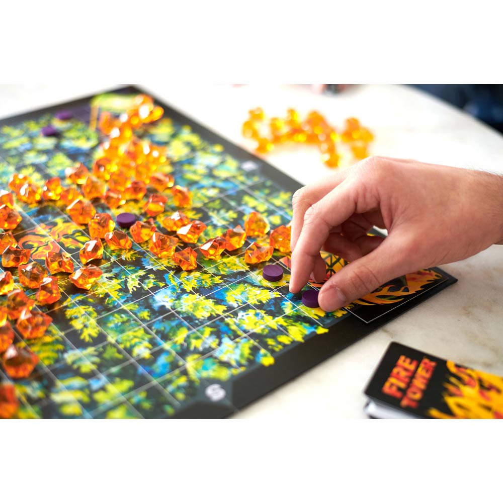Smoke rises on the horizon. Protect your fire tower from a rapidly spreading forest fire. Dispatch smokejumpers and fire engiines to combat the blaze and construct firebreaks to fortify your tower. But there is a twist! In Fire Tower, you also take on the role of nature. Harness the power of the wind and the flames to push the blaze towards your opponents and take down their towers.