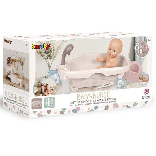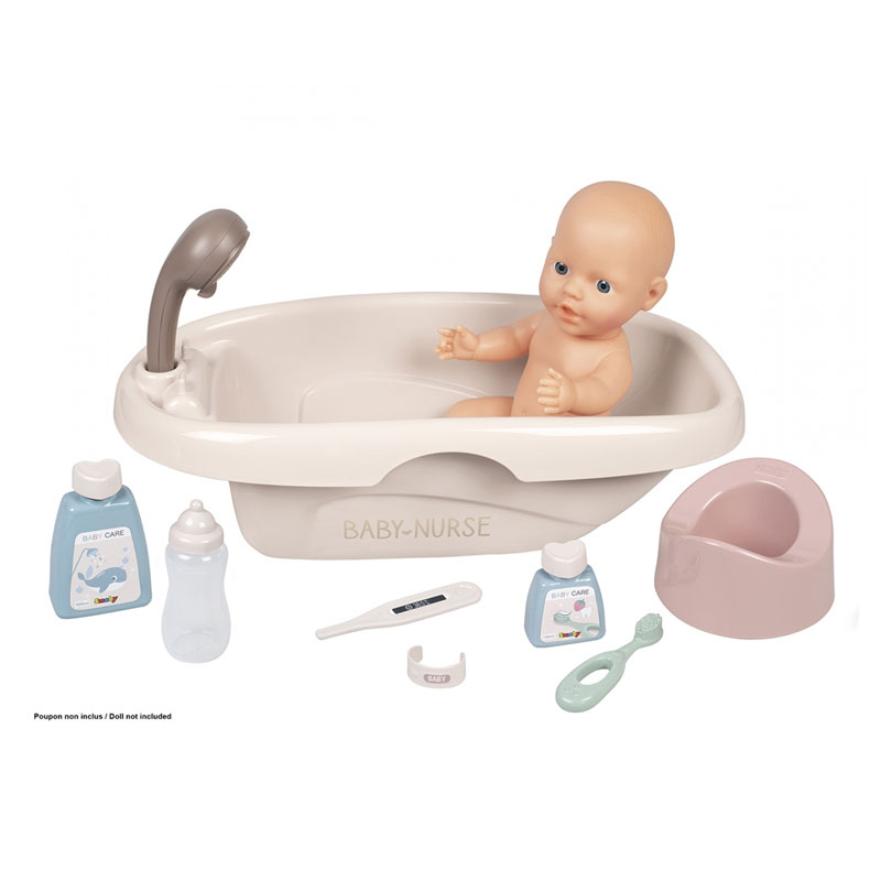 - 1 tooth brush, 1 baby bottle, 2 flasks, 1 shower head with mechanical action, 1 bracelet for the doll, 1 thermometer, and 1 pot