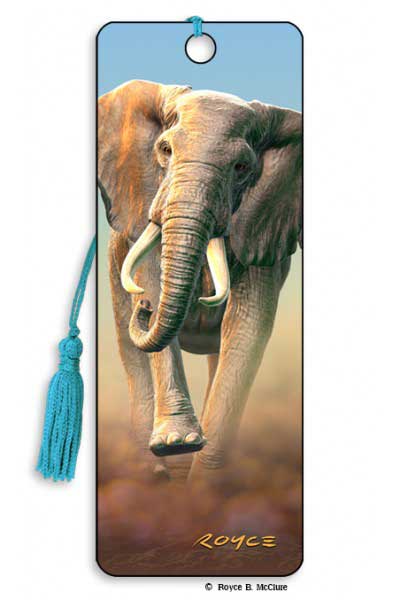 Fantastic 3D Charging Elephant Bookmark. Artgame manufactures the highest quality eye-popping 3D lenticular products on the market. No 3D glasses required! Each item features the artwork of renowned artist, Royce B. McClure. Check out all of the amazing designs to start your own collection! Each bookmark comes with a tassle. Tassle colours may vary.