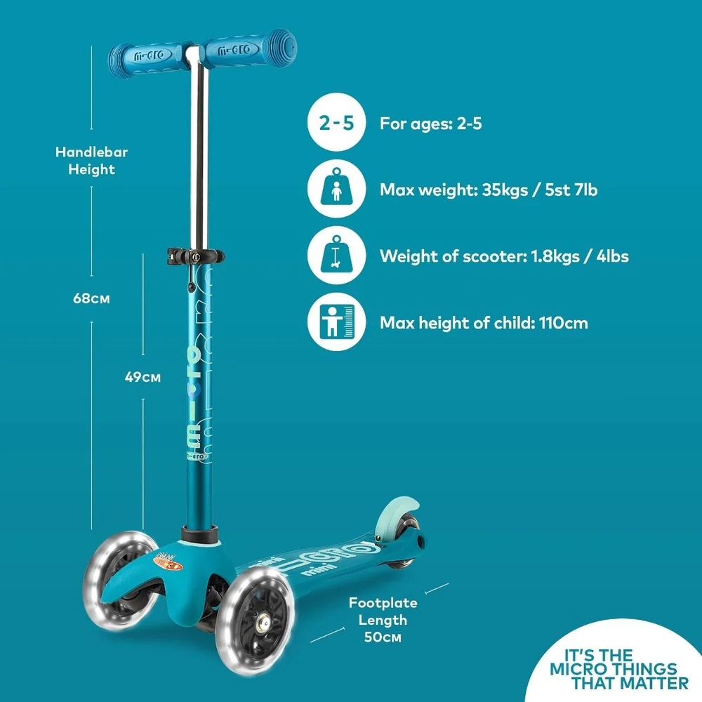Mini Micro Deluxe LED Kickboard Scooter - Aqua