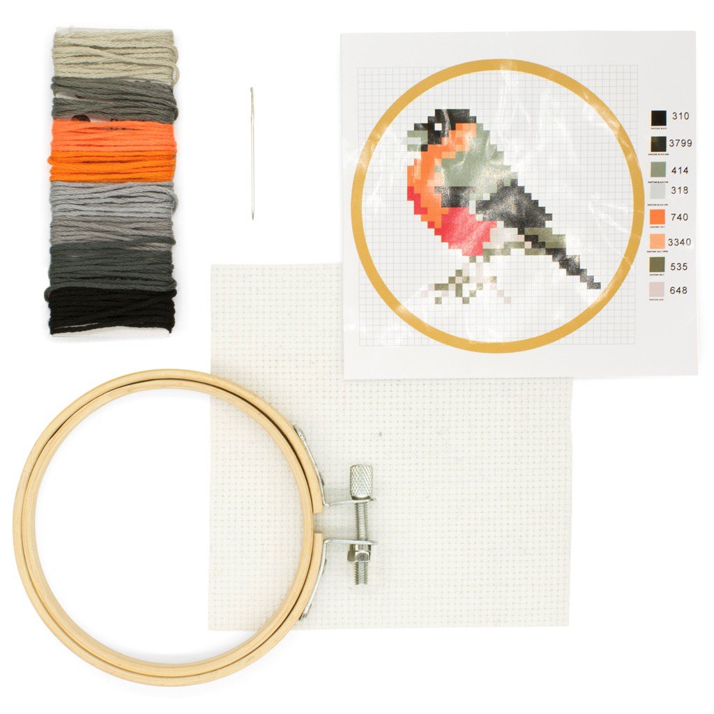 This mini cross stitch embroidery bird kit is an ideal way to begin cross stitch or a small project for an expert.
