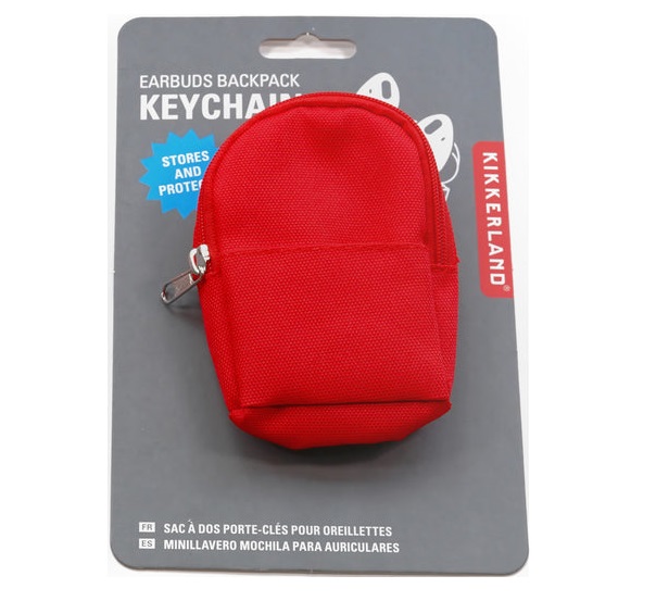 This smart and convenient Earbuds Backpack stores and protects your earbuds (or whatever else you want to use it for). Has a built-in keychain that easily attaches to your bag, jeans or backpack. Made of sturdy polyester nylon with zipper.