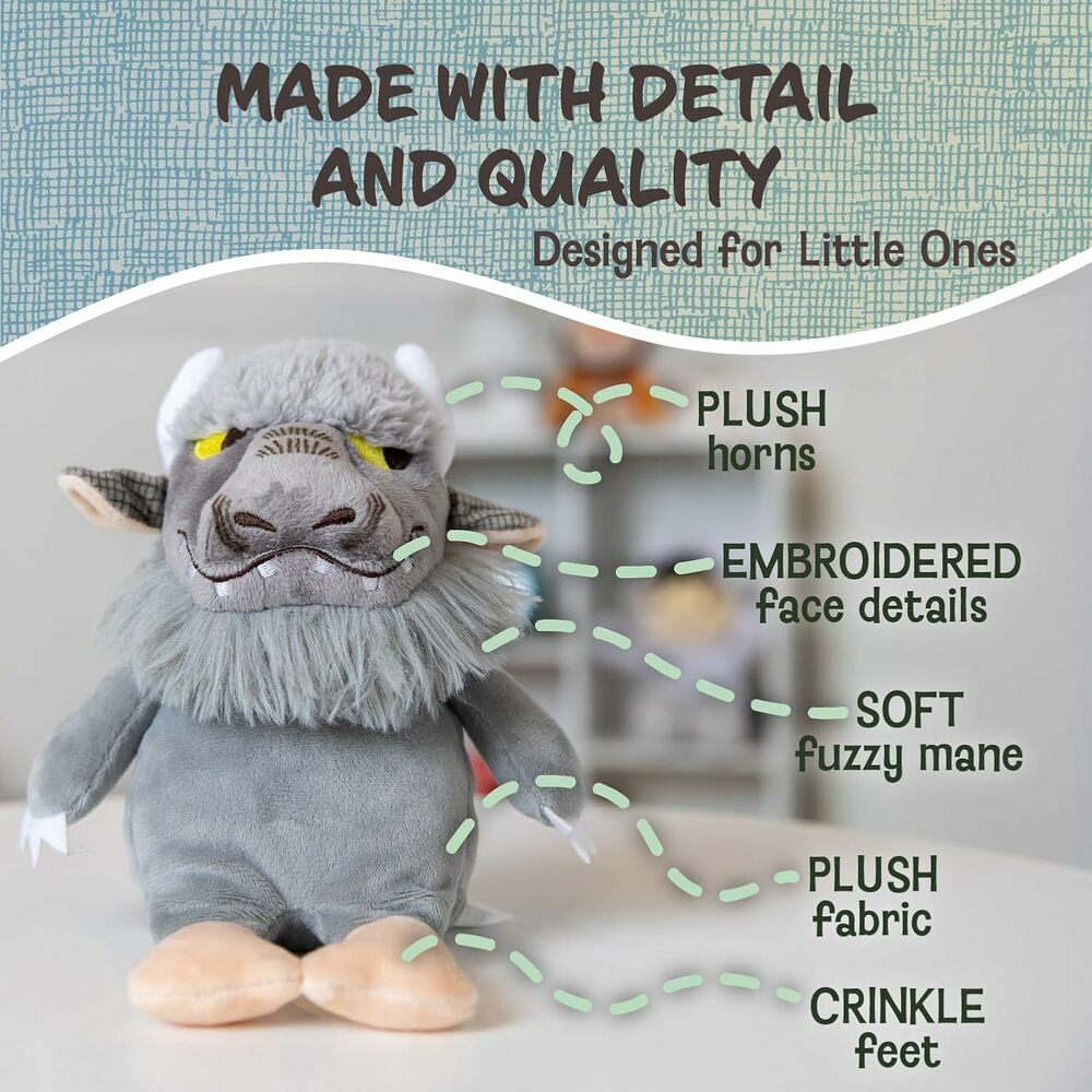 DETAILS: Inspired by "Where The Wild Things Are," Bernard stands 9 inches tall, featuring crinkle feet and a removable hood. This plush toy captures the essence of the classic tale and is perfect for fans of the book.