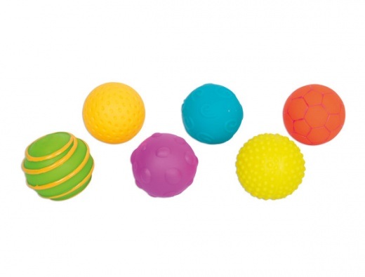 A set of 6 differently textured and colored plastic balls which are the ideal size for small hands to handle. The surface textures are fun to examine and describe, and the set can be used on its own, as an additional set for the Sensory Meteor Ball, or as part of a wider sensory exploration activity.