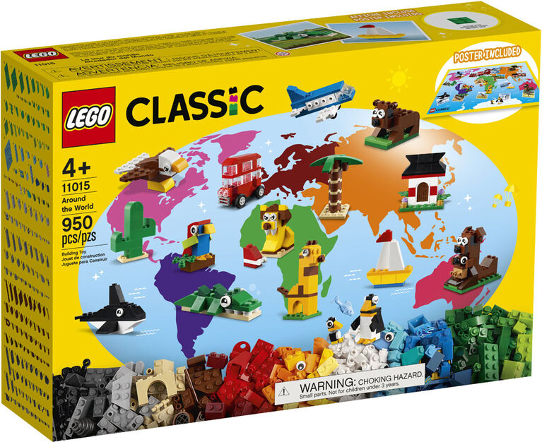 LEGO® Classic Around the World (11015) playset comes with 15 build ideas based on iconic animals and objects from around the world. Kids also get a colorful wall map to show the home continent of each animal and plant. And with such a wide variety of LEGO pieces, plus lots of extra bricks in the box, open-ended creativity is free to flow.