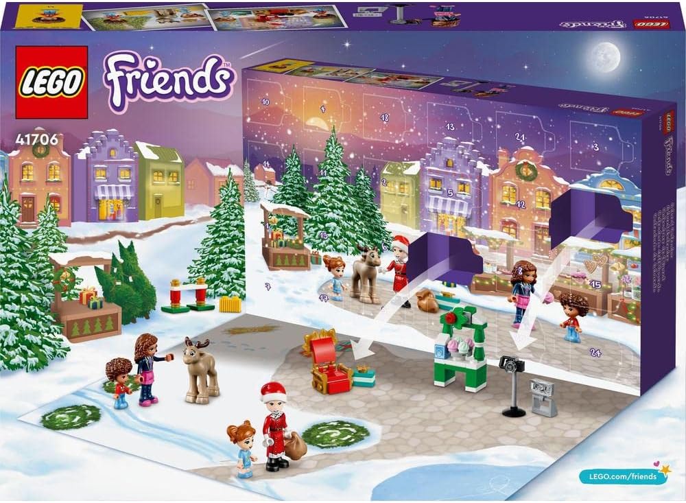 Build the excitement running up to Christmas with the LEGO Friends Advent Calendar (41706), containing buildable characters, activities and accessories. This set comes with 3 LEGO Friends characters, Santa and a reindeer, a sleigh piled with Christmas presents, plus fun Christmas activities. This year's theme is Olivia’s fun family Christmas. Kids tour the fun stalls of the market with Olivia, enjoying all the fun Christmas activities before visiting Santa and his reindeer. 24 mini builds let kids role-play building a snowman, ice-skating and karaoke, making a toy rocket and eating tasty holiday treats from the food stalls. This is a great pre-Christmas gift. This creative Advent Calendar can be given as a holiday present for boys and girls aged 6+ who love festive play, and it will continue to entertain well beyond December.