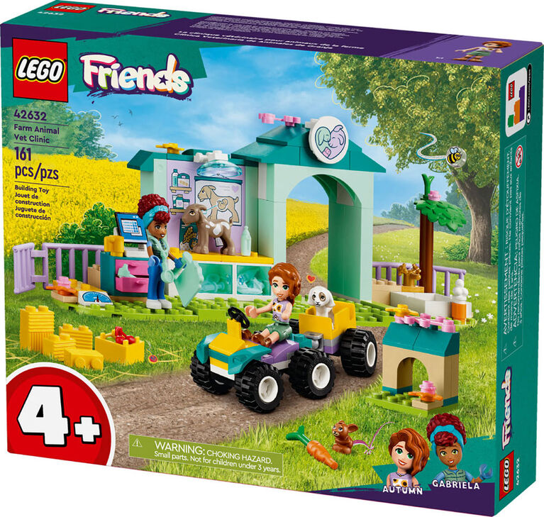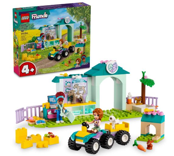 Inspire kids ages 4 years old and up to care for animals with this LEGO Friends Farm Animal Vet Clinic (42632) toy set. This kit helps kids learn to build and comes with a buildable vet clinic, 2 mini-dolls, 3 animal figures and farm vet accessories to inspire imaginative pretend play. This farm animal toy building kit makes a great gift idea for kids who love pretend play. Children can create their own friendship stories as Autumn helps vet Gabriela care for the new baby goat. They can transport the animals on the trailer, then give them a checkup using the desk, scales, computer and light. Next, they can help Autumn bathe the animals and give them a tasty treat to munch. This set makes a great gift for 4 year old boys and girls.