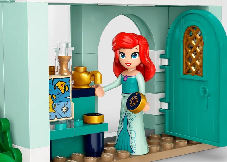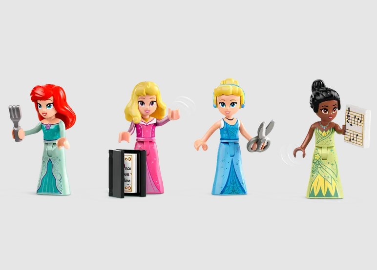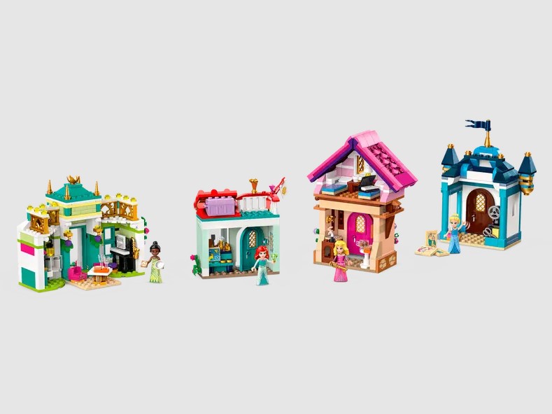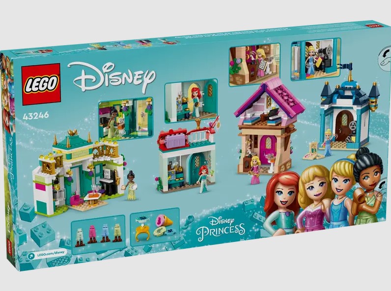 - -Imaginative possibilities – Includes 4 buildings, a smaller area with a flowerpot, bench and fountain, plus Ariel, Aurora, Cinderella and Tiana LEGO® ǀ Disney Princess mini-doll figures