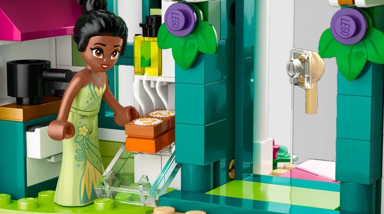 - -Creative details – Tiana’s restaurant has storage space on top to hold the collectible rings and decorations, and the treasure shop has a buildable toy chest on top with treasure inside