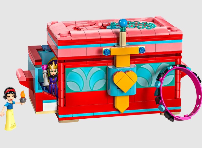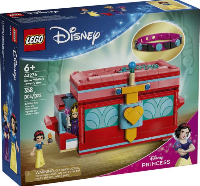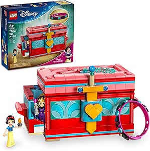 Delight kids and Disney fans with the premium gift of this LEGO® ǀ Disney Snow White’s Jewelry Box (43276) buildable toy playset. It features a box with an opening lid and handles on each side that pull open to reveal hidden rooms, a swordand chain lock, Snow White and the Evil Queen LEGO ǀ Disney mini-doll figures and a colorful bracelet with plenty of decorating elements to design, wear or share.