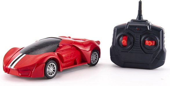 Send it crashing into the wall, and the magnetic outer parts fly everywhere! No worries. What gets revealed is a sleek racecar with 6 cool LED lights. Simply snap the bumpers and fenders back on to continue play! Requires 5 AA batteries, not included.