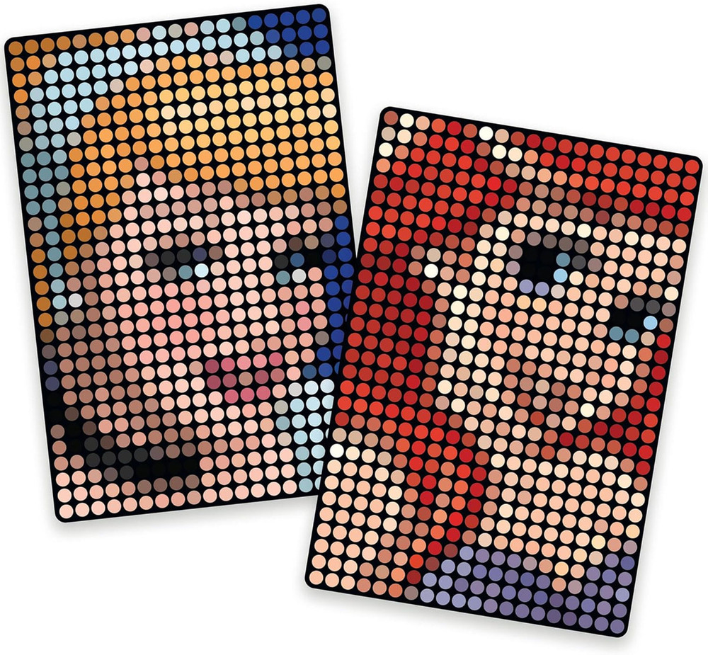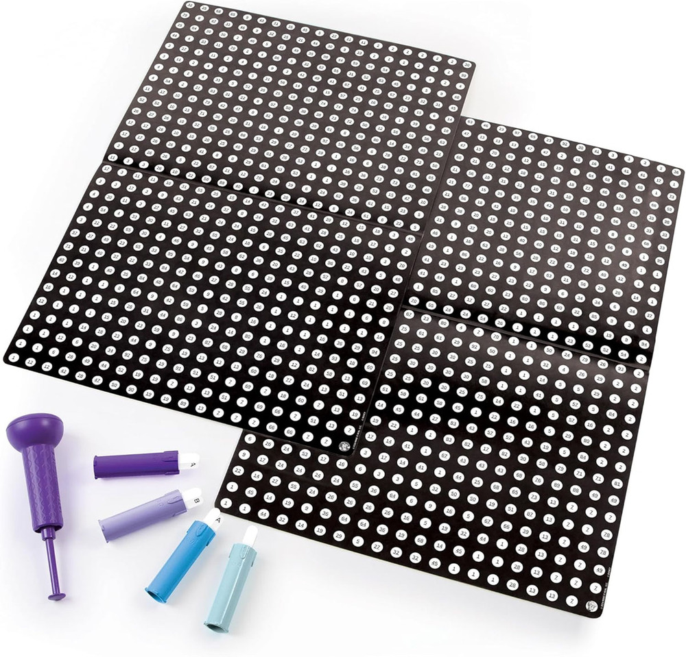 This new style of art takes paint by number, sticker by number, Diamond Dotz, and pixel art and makes a new creation! The background is sticky and numbered. You have little cartridges with numbered dots. As you match the numbers, press the dot and reveal the colored dot! This is not messy at all – no beads to spill, and no paint. A pretty picture is revealed at the end.