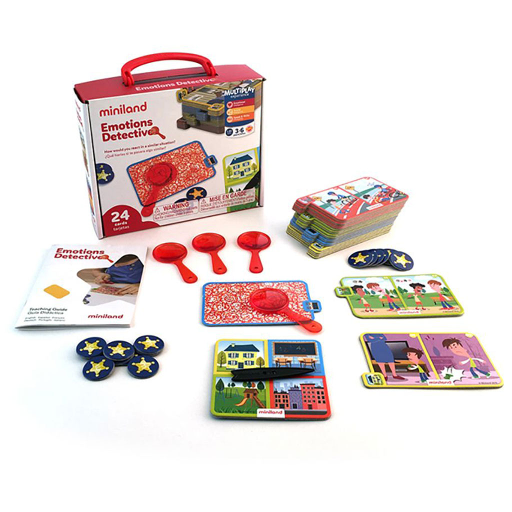 Our Emotions Detective game creates an opportunity for educators to open a dialogue about every day conflicts. Children can develop their deduction skills as they interact with a magnifying glass, like a true detective. Picking out clues leads children to the solution of their investigation. This game promotes recognition of emotions and how to deal with them by interpreting how people feel.
