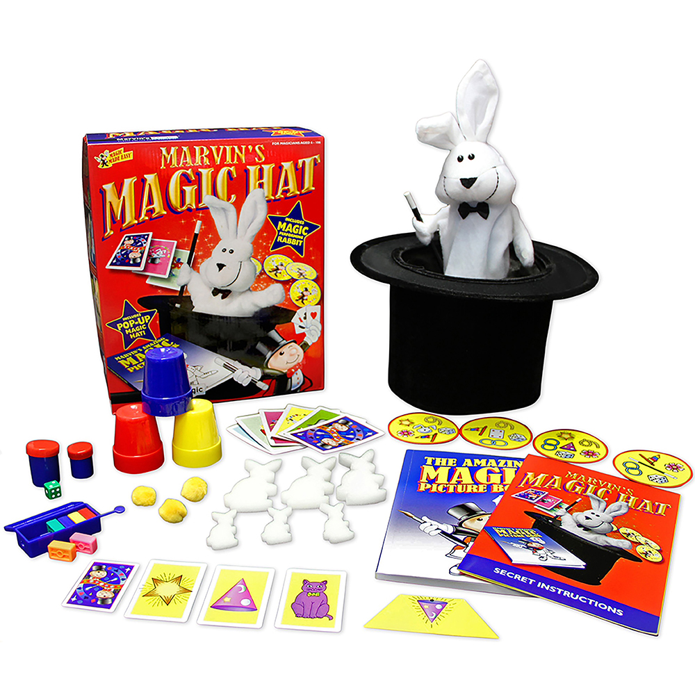 Young magicians really can pull a rabbit out of a hat! A deluxe magic pop-up top hat you can wear, plus a cute appearing rabbit that not only can be used as a glove puppet but also performs the amazing magic tricks with you!