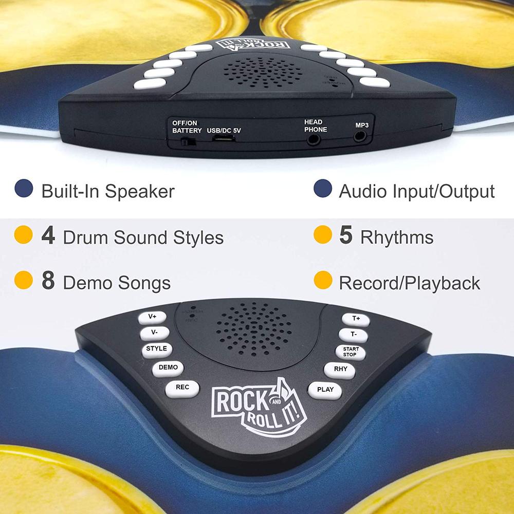 Rock and Roll It - Bongos is an electronic hand drum pad that is flexible, portable, and easily to travel with. Take it with you to play anywhere! Unique pad design mimics real bongos. Realistic drum sound styles and corresponds low/high tom coro and low/high tom edge to bongos’ drum head and rims. These electronic bongo drums allow beginners to masters and all ages to enjoy the beat and join the rhythm by striking the pad with your favorite music.