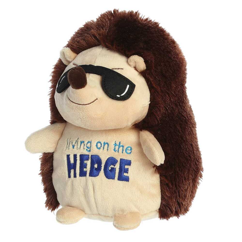 Make someone special smile with this cute and funny Livin' On The Hedge plush toy from the Just Sayin' Collection by Aurora! Just Sayin’ is a collection filled with pun-forward plush characters each with a goofy expression that can be gifted for any occasion. This hedgehog has a light brown body with dark brown fur throughout and a punny expression written across to make anyone smile.
