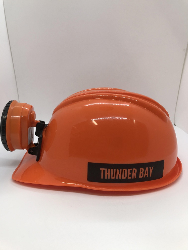 Teaching kids about geology - rocks, minerals, crystals and fossils - is fun with the right gear. This realistic helmet features bright, directional LED bulbs, an adjustable inside band for comfort, an on/off switch for efficiency, and "Thunder Bay" written on the side.