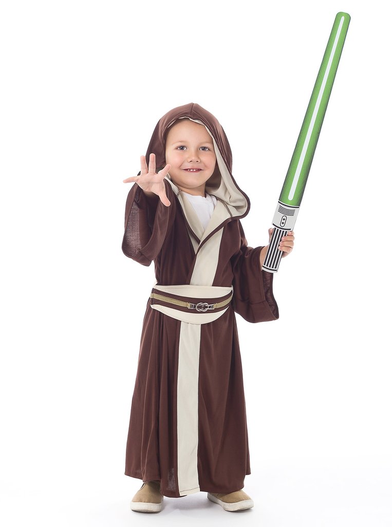 Our Galactic Warrior Cloak will help transform your child into the otherworldly warrior of their dreams! This newly designed cloak is made of knit fabric with a fully lined hood. The adjustable foam knit belt has a velcro closure and adorned with an out-of-this-world metal decorative buckle. Features: Machine washable.
