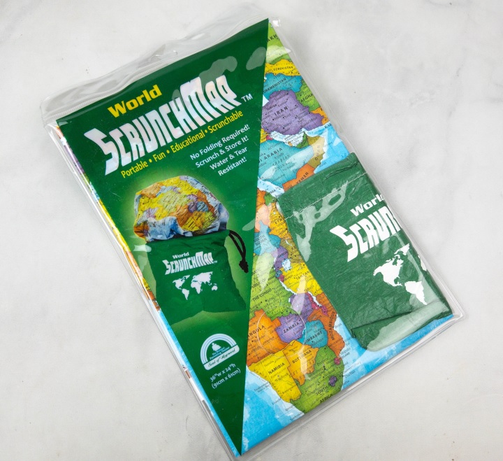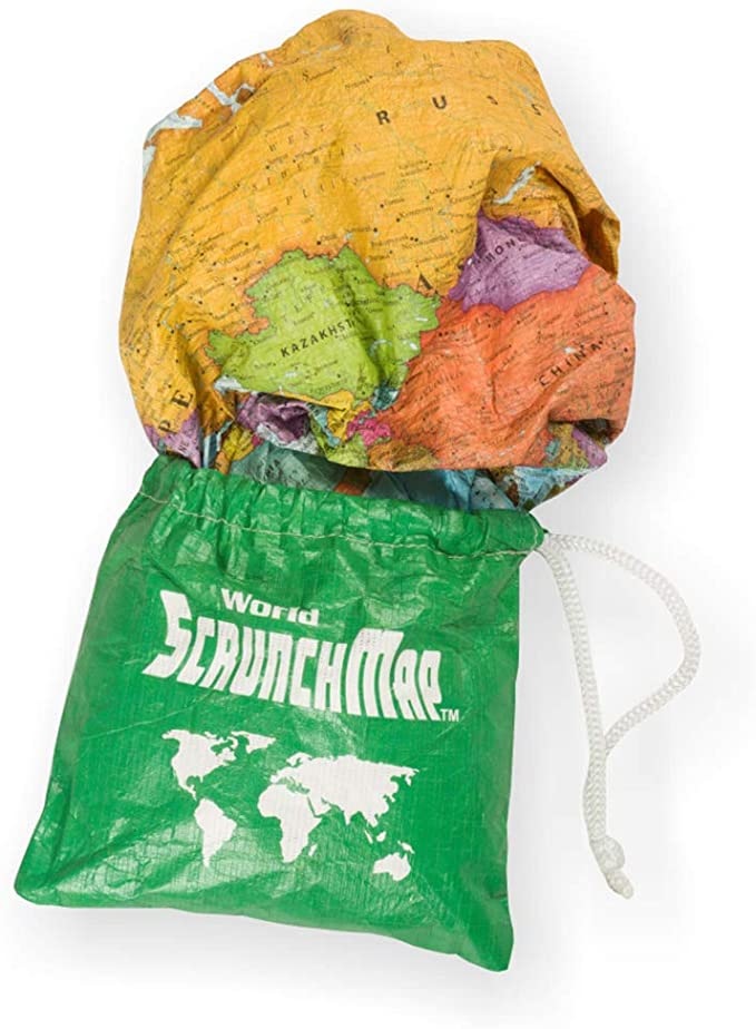 You must try this water and tear resistant ScrunchMap of the World! This fun learning tool measures 24-inch x36-inch and lasts much longer than a paper map. All you need to do is 'scrunch' it up and store it in your pocket, backpack, or desk! It is one of a kind and is portable, fun, and educational.